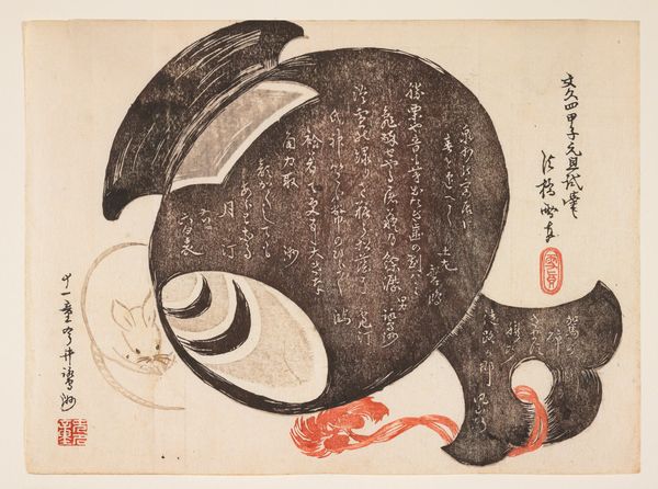 This woodblock print of a hare among dandelions was made by Kubo Shunman in Japan, likely in the late 18th or early 19th century. It exemplifies the Ukiyo-e style, a genre that flourished during the Edo period. These images were originally aimed at a growing merchant class, keen for art that reflected their own everyday lives and interests. This print speaks to the renewed interest in the natural world, a sentiment that grew with increased urbanization. The delicate lines and soft colors evoke a sense of tranquility, a conscious turn away from the formality of court painting. These images were not just commodities but a reflection of the shifting social landscape. To better understand this artwork, look into the history of the Ukiyo-e school, its patrons, and its place in the broader context of Edo period society. Only then can we truly appreciate its cultural significance.