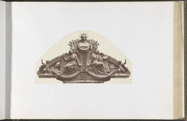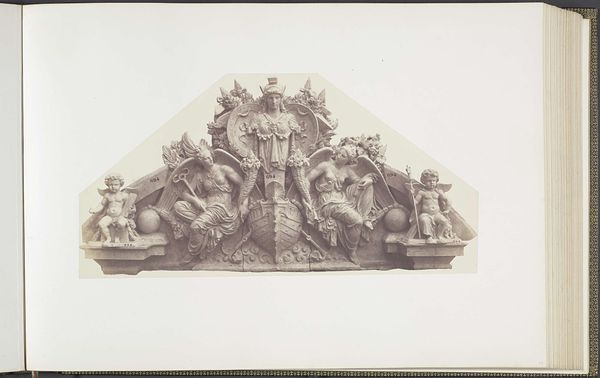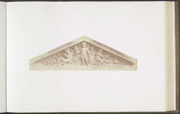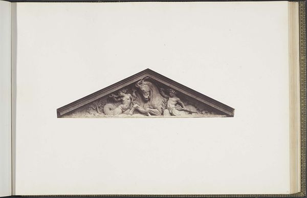 Edouard Baldus created this photograph of a plaster cast for a sculpture on the Palais du Louvre. It shows a triangular pediment, full of classical figures and symbols. Baldus was working in France during a time of massive reconstruction and nation-building. Photography was seen as a tool to document and celebrate these changes. Yet, while this photograph celebrates French artistic heritage, it also subtly reinforces the power structures of the time. The Louvre, as a symbol of French cultural identity, is framed through a medium that was still emerging. What does it mean to document traditional art forms through new technologies? Baldus invites us to consider not just the beauty of the sculpture, but also the ways in which it contributes to the story France tells about itself. This image captures a moment in time when art, politics, and technology were all intersecting to shape national identity.