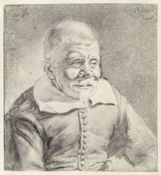 Curator: This etching by Wenceslaus Hollar, dating from 1665, now resides here at The Met. The work, entitled "Bust of a man with hooked nose, prominent upper lip, open mouth and thick, short curly hair resembling wig in profile to left", presents us with a rather intriguing character. Editor: Intriguing is one word. The distorted features, the grimace… it’s visually arresting, almost grotesque, relying heavily on caricature, but also makes me feel uncomfortable. There's an intense, unflinching directness in the etching. Curator: Well, we need to remember the time. The mid-17th century witnessed an increase in depictions of the marginalized within European society and in representing "types," and these representations, while falling under the umbrella of genre paintings, often played into pre-existing stereotypes, some reflecting power dynamics of race and class. Consider how Hollar’s patron, the Duke of Norfolk, saw such representations in their social context. Editor: So the focus is less on individual portraiture and more on representing societal "types?" I still find myself fixated on the craftsmanship. The dense crosshatching creates a surprising amount of depth and volume. See how Hollar uses contrasting tones to define the man's facial structure and wig. Curator: Exactly. Hollar's skill is undeniable, yet we can't ignore how it serves potentially problematic narratives of difference. The exaggerated features reinforce stereotypical notions of beauty or normalcy. It’s worth researching other contemporaneous sources and analyzing what "normal" was meant to resemble during the time that Hollar made this portrait. Editor: I see your point. The sharp lines and exaggerated features contribute to a specific construction. He doesn’t soften his interpretation of what he thinks he is viewing. Even the plain background contributes; the stark simplicity amplifies the sitter's intense features. Curator: Ultimately, I think this etching challenges us. Hollar’s artistic skill compels our gaze, even as we reflect on the broader sociopolitical dimensions that have shaped both the work itself and how we receive it today. Editor: Agreed. The intense contrasts—formal skill and questionable subject matter—offer insight into Hollar's technical skill. Analyzing this etching in order to reflect more deeply upon societal issues seems necessary.