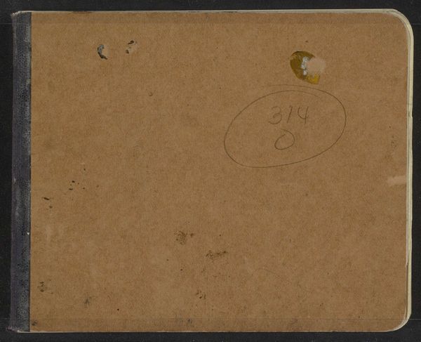 Editor: This is *Schetsboek LXII met 28 bladen*, or "Sketchbook LXII with 28 sheets," made by Isaac Israels between 1875 and 1934. It's a mixed media work incorporating drawing and colored pencil on paper. It's the outside cover of a notebook and the splotches on the brown paper suggest this sketchbook was well used! How should we interpret the significance of such a mundane object? Curator: Seeing this sketchbook, I'm immediately drawn to thinking about the labor inherent in artmaking. A sketchbook isn't the polished finished product, right? It's a space of experimentation, and I would assume of failure and revision. Considering Israels’ social circles, how might his access to resources have shaped his artistic development, as documented in this sketchbook? Editor: That’s an interesting perspective – considering access to resources. I never really thought about that when looking at a sketchbook. What do you mean? Curator: Well, privilege plays a massive role in who gets to create, experiment, and ultimately, succeed in the art world. Who has the time and money to explore creative avenues, like filling a whole sketchbook? I always wonder about the countless untold stories of those who were denied these opportunities, often along the lines of gender, class, or race. Does seeing the publisher information "Amsterdam" impact your interpretation, particularly when juxtaposed against who could afford such a sketchbook? Editor: That is something I hadn't considered. I see that the book comes from Amsterdam, a relatively international and urban city... It certainly would change the reading of this object if it had been created in a more rural setting with less wealth. Curator: Precisely! This object invites us to consider the societal structures that both support and limit artistic creation, and to question whose voices are amplified and whose remain hidden. Editor: That's really insightful. I’ll definitely view sketchbooks differently from now on! Curator: That’s the power of art, right? To make us question our assumptions and expand our understanding.