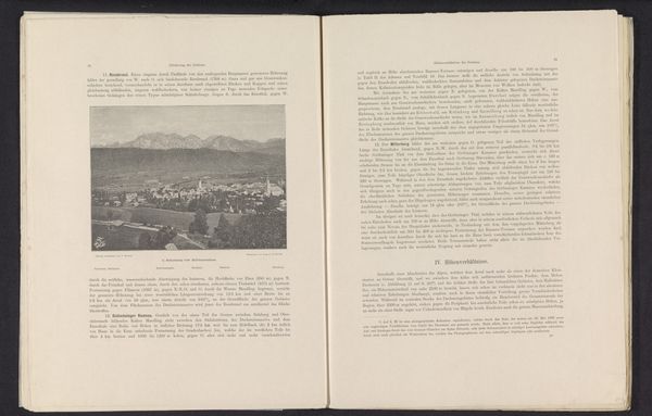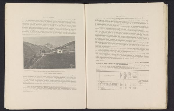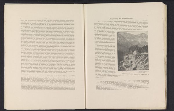 Curator: Okay, let's dive into Friedrich Simony's "Gezicht op de spoordijk bij Eben im Pongau", possibly from 1888. It is a print, from a photograph and so partakes in both. What catches your eye? Editor: It’s a really interesting composition! It's giving me a feeling of almost sublime distance. Like looking back at a past I never knew but feel I remember. The mountains frame the man-made railway in this photograph of a print... What do you see in this piece? Curator: Well, isn’t that interesting? You are picking up on a past you never knew. Me too! A lost past, even a sublime lost past that only partially existed in the making! Simony, the clever devil, frames not just the scene with mountains, but also reality with... a mediation! I’m sensing a delicate conversation about industrial progress nudging into the romantic wilderness, yes? It whispers of transition, of nature's grandeur yielding, perhaps reluctantly, to human ambition. Do you find yourself drawn more to the mountains or to the railway itself? Editor: I think I'm drawn more to the juxtaposition between the mountains and the railway—the relationship more than the things by themselves! It does make me think about progress versus preservation, in a surprisingly subtle way for such a stark contrast. What did Simony want us to take away, do you think? Curator: Perhaps he’s not so much demanding a takeaway but more encouraging contemplation. Simony offers no judgment, only observation, urging us to consider the ever-shifting dynamic between nature and our imposed structures. Does knowing it is made up from photography shift things again? Editor: That makes me see it in a totally different way, I hadn't thought of it as observation before, but that totally makes sense. Thanks for walking me through your perspective!