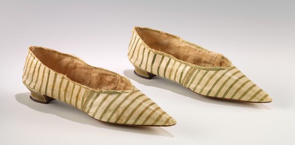 These red velvet mules, embroidered with multicolored flowers, were crafted by an anonymous artist. Notice how the plush texture of the velvet interacts with light, creating subtle shifts in color and depth. The vibrant floral embroidery offers a textural contrast. This interplay between the soft, muted red of the velvet and the lively, raised patterns of the flowers draws the eye and invites a closer inspection. We can consider the use of floral motifs not merely as decorative but as signifiers of status and taste. In this context, the semiotic analysis allows us to consider how the creator engages in a dialogue with established codes of luxury and domesticity. The very form of the mule, designed for indoor use, suggests an intersection of personal comfort and public display. The aesthetic choices of the artisan reflect broader cultural values. The embroidery's tactile quality and organic design destabilize the fixity of form and meaning, inviting ongoing interpretation.
