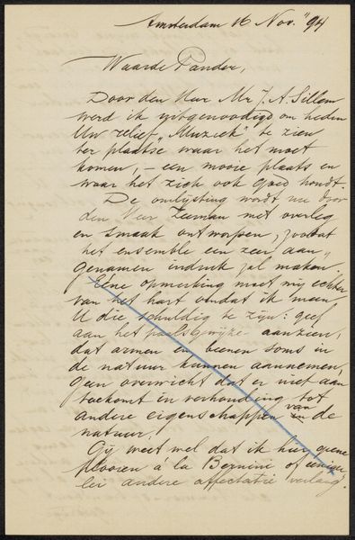 This letter to Philip Zilcken is an interesting example of Nieuwenkamp's handwriting. It's amazing to think about how much information and personality can be conveyed through this medium alone, right? I love looking at the textures and physical qualities of a handwritten letter, seeing the pressure of the nib and the way the ink pools in different spots. Look at the loops in the 'd's, and the strong horizontal strokes, they really give the letter a certain rhythm. And notice how the shade changes, giving some words more weight than others. All these little details are what make a letter so special, so human. It reminds me of Cy Twombly's mark-making, the way he used handwriting as a form of drawing. It's all about gesture and expression. In both artists, we find a deep connection to the act of writing itself, not just the message, but the way the message is delivered, which becomes art.
