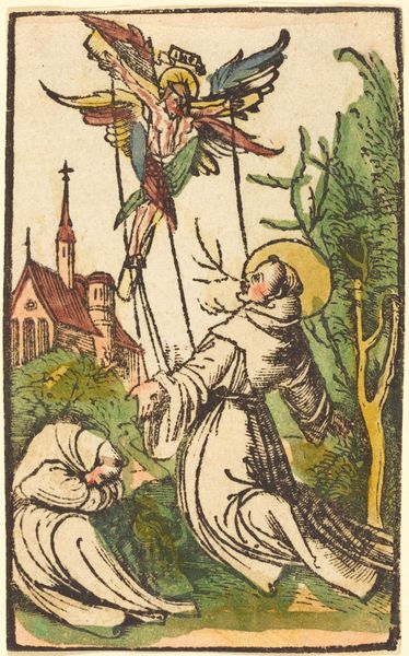 Hans Schäufelein created this woodcut of ‘Christ as Good Shepherd’ as part of ‘Das Plenarium,’ a German book containing all the Gospels and Epistles read throughout the Church year. Produced in the early 16th century, the image reflects the religious and social concerns of the time. Schäufelein presents Christ in a humble, pastoral setting, carrying a lamb, a powerful symbol of care and sacrifice. This imagery would have resonated deeply in a society where the Church played a central role in daily life. The woodcut's creation was influenced by the rise of printmaking, enabling the wide distribution of religious images and ideas. The Reformation, with its critiques of Church authority, was also brewing, so it is interesting to consider how the humble imagery might have reflected or challenged the opulence of the Church at the time. The meaning of this work is deeply rooted in its historical context, with the interpretation of sources, such as religious texts, social histories, and the history of printmaking, providing valuable insights.
