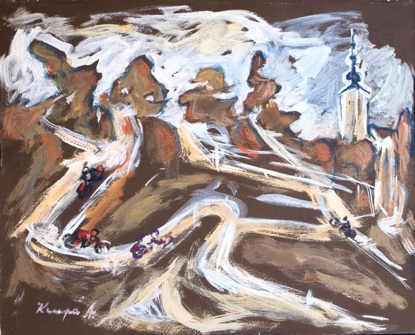 Editor: Looking at "Les Bords De La Tocques Á Pont L’eveque," an oil painting, supposedly by Édouard Vuillard, the heavy impasto really jumps out. It almost looks like the paint itself is fighting to form an image. What's your take? Curator: Well, as a materialist, what first strikes me is how Vuillard pushes the boundaries between the art object and pure material. Look at the thickness of the paint, the way it sits on the surface. It's almost like the paint is an independent entity. How does this visible labor of creation affect your perception of the "landscape"? Editor: It makes me think about the physical act of painting more than the scene itself. It's like the labor is the subject. Does the rough application of paint connect to anything outside of the painting? Curator: Exactly! Consider the context. Vuillard lived through massive industrial changes. His embrace of visible, tactile processes – the “hand” of the artist – directly opposes the increasingly invisible labor in factories and mass production. He elevates the making! Editor: So, by emphasizing the physical creation of the painting, he's almost making a statement about the value of labor in a changing world? Curator: Precisely. Think about the tools: brushes, pigments, the canvas itself. Vuillard brings our attention to the very stuff of art, challenging the notion of art as some ethereal concept divorced from its means of production. It is an elevation of the manual against mechanization. Editor: I hadn't thought about it that way, I was caught up in it just "being" a landscape. Seeing the process as a comment on industry really opens things up. Curator: Good, because art isn't divorced from reality! Editor: Right, this reminds me that focusing on the materials can reveal layers I never would have seen before. Thank you!