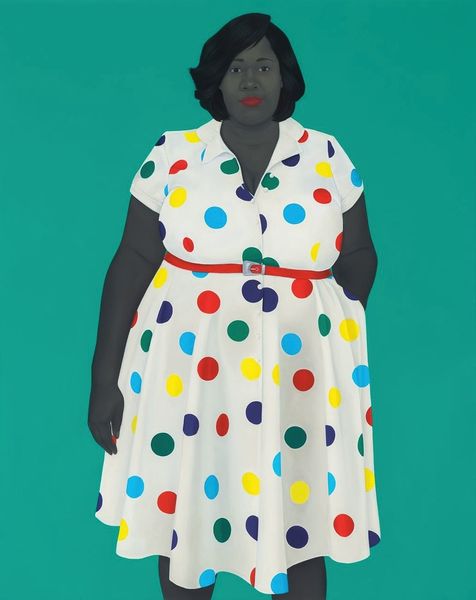 Amy Sherald’s ‘Breonna Taylor’ is a painting about presence, made with oil on canvas. Sherald’s paintings often use a grayscale palette for the skin tones, and then punch it up with bright, almost Matisse-like colors for the clothes and background, which is kind of like she’s turning up the volume on certain parts of the composition. There's something really striking about that flat turquoise background. It pushes Breonna forward, but also creates this feeling of being suspended in a space that’s not quite real. Look at the way the fabric of her dress drapes and folds. You can almost feel the weight and texture of it, even though it’s rendered with such smooth, controlled brushwork. And then there’s her gaze. It’s direct, confident, but also a little bit vulnerable, inviting you in but also holding you at a distance. Seeing this, I’m reminded a little of Barkley L. Hendricks, the way he used color and composition to elevate his subjects and give them this iconic, almost regal quality. Sherald really captures the spirit and complexity of her sitter, making her both an individual and an emblem of our times.