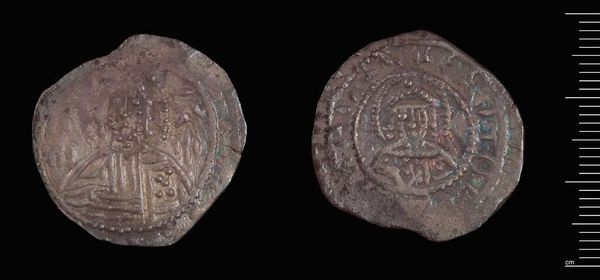 Editor: This is the Stavraton of John V, a small coin at the Harvard Art Museums. It feels like holding a piece of history. What symbols jump out at you? Curator: The Stavraton, beyond its monetary value, served as a potent symbol. The imagery, though worn, speaks to the emperor's authority and divine mandate. Do you see how the cross, central to the design, links temporal power with spiritual legitimacy? Editor: I see that, and I guess I hadn't considered it beyond its functional role. Curator: Precisely! Coins like these were vital carriers of ideology, shaping perceptions of power and faith for a broad audience. Its visual language speaks volumes about Byzantium's cultural memory. Editor: So, it's more than just money. It's a message? That’s fascinating. Curator: Indeed. And decoding that message unlocks a deeper understanding of the past.