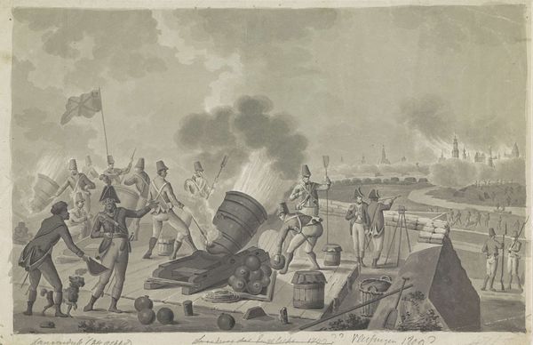 Carel Christiaan Antony Last created this print of the ‘Zeeslag bij Plymouth, 1652’ using etching techniques. It presents a clash between Dutch and English warships. This battle was about the control of trade routes and maritime power. The image uses dramatic visual elements, such as billowing smoke and turbulent waves, to evoke the chaos and intensity of naval warfare. Produced in the 19th century, the print romanticizes the earlier conflict in a period of rising nationalism and Dutch cultural introspection. The glorification of naval battles reflects a desire to assert national pride. The print shows the importance of the Dutch Republic's maritime legacy during a time of shifting European power dynamics. Understanding the historical context of this print involves looking into economic policies, naval histories, and artistic trends of both the 17th and 19th centuries. It calls for an examination of archival documents, period publications, and scholarly analyses of Dutch maritime history and art.
