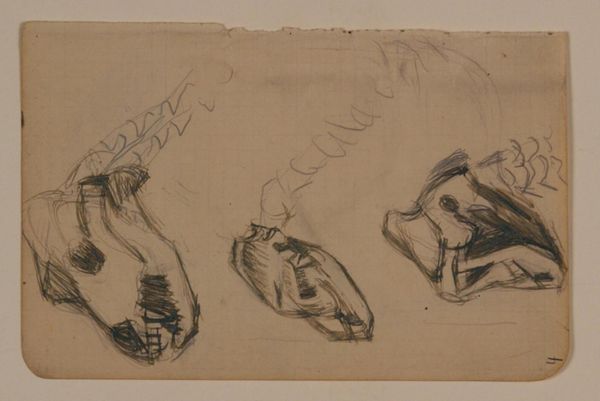 Curator: Here, we have Niels Larsen Stevns’ “Skitser af rovfugle. Artsbetegnelser,” made between 1900 and 1905. It is rendered using pencil, colored pencil, and frottage on paper. Editor: There's an urgent quality to these sketches, like the artist was compelled to quickly capture a fleeting presence. There is something primal here, it almost feels prehistoric. Curator: Well, the medium itself supports your interpretation; the layering of pencil, crayon, and frottage builds texture in a way that mirrors the physical layering of time and geological strata. Look at the different ways the artist used line—hatching, scribbling, contouring—it all speaks to the working process. Editor: I'm intrigued by how these birds of prey are portrayed not as majestic symbols, but rather deconstructed, almost vulnerable. This could be viewed as a commentary on human disruption of natural habitats. I see themes of power, vulnerability, and perhaps a broader commentary on ecological balance. Curator: Consider too the economic context. During the turn of the century, there was growing tension surrounding land use and conservation. Niels Larsen Stevns created numerous nature drawings throughout his career—I would also venture to say that his familiarity with working-class labor practices in agriculture deeply informs this sketchbook. Editor: It does prompt me to reflect on the social conditions during Stevns’ time, and perhaps on how urbanization and industrial growth were beginning to reshape the relationship between humans and the natural world. And even the simple choice of medium—pencil on paper—signals a conscious artistic choice regarding accessibility and the work. Curator: Exactly. Pencil, crayon and paper are easily sourced materials for art workers and artists, which can provide insights into its production value in fin-de-siecle art production. The fact that these are sketches is an honest acknowledgement that making art can be part of one's every day practices. Editor: So much can be inferred by exploring this compelling composition. Thanks for lending your insights. Curator: A real pleasure. And to consider such a seemingly simple sketchbook gives a great deal of insight.