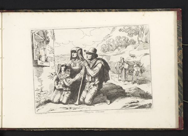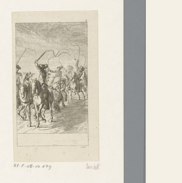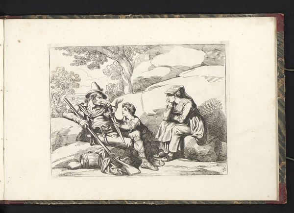 Editor: "Two Men with a Magic Lantern," an etching by Joseph Franz Freiherr von Goez. It's, uh, atmospheric! Kind of dark but also playful... How do you interpret this work? Curator: Playful is a good word for it! It whispers of an older time, of gatherings lit by candlelight and fueled by wonder. What’s particularly delicious here is how Goez uses the humble magic lantern – basically an early projector – to hint at illusions, maybe even anxieties. Does the lantern reveal truths, or does it simply fabricate shadows? Are those men looking with pleasure or suspicion? It's a question worth pondering over a glass of wine, wouldn't you say? Editor: Definitely. I guess I was seeing it more as just entertainment, but that question of truth and illusion makes it a bit unsettling, too. Curator: Precisely! And it gets even richer. The artist, the Baron von Goez, what an interesting guy to find dabbling in what's nearly popular entertainment of his day. Perhaps he’s hinting that enlightenment itself can be a trick of light, you know? Everything looks scholarly on paper but... maybe there are still hidden truths somewhere, like that small hat thrown near the stage... What story is there? Or not? Ha! It tickles the mind, doesn't it? Editor: Yeah, it's made me rethink what's actually happening in this picture. It's a lot more than just guys watching a show. Curator: And isn't that the enchantment of art, dear student? To make us see not just what *is*, but what *could be*? Editor: It definitely is! This has made me see those hidden truths and illusions... I'll never see etchings quite the same way again.