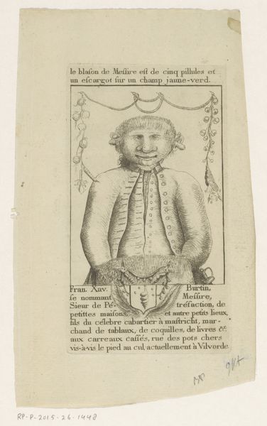 This is Stefano della Bella's "Chile" print, part of the "Jeu de la Géographie" playing cards, created in the 17th century. It's a small work, using fine lines to depict a figure who represents Chile. The figure is composed of a series of lines that define its form and texture, giving the figure a sense of movement, with a headdress, shield and staff. The lines are not uniform, but vary in thickness and density, creating contrast and depth. There is a visual hierarchy at play: The figure and title are emphasized through their placement at the top and center, drawing our eye to the image and the label. This print functions as both an aesthetic object and a tool for knowledge. It invites us to reflect on how geographic and cultural identities were constructed and disseminated in early modern Europe, blending the boundaries of art, science, and cultural representation.