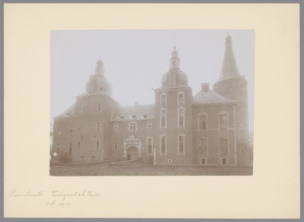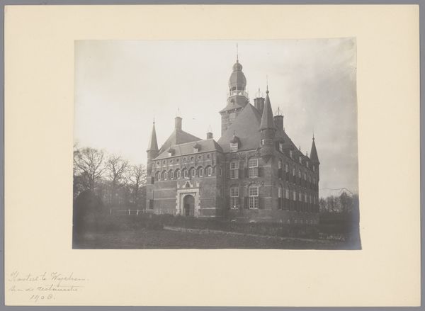 This image, made by an anonymous photographer from Monumentenzorg, presents a view of Wijchen Castle after its restoration. The grey scale renders a study in tones, where the play of light and shadow becomes the main event. The photograph's surface has a gentle texture; you can almost feel the grain of the photographic paper. Notice how the light delicately traces the architectural details, like the many rows of windows, creating a pattern that's both precise and slightly softened. Look closely at the castle’s tower; it’s not just a shape, it’s a collection of tones that meet the sky. The trees surrounding the castle are like scribbles on the edge, adding to the picture's atmosphere. This photograph evokes a sense of time and history, but it also reminds me of the work of Bernd and Hilla Becher, who also chronicled architecture with such care. In both cases, you can see that art is an ongoing conversation, where artists build upon each other's ways of seeing.