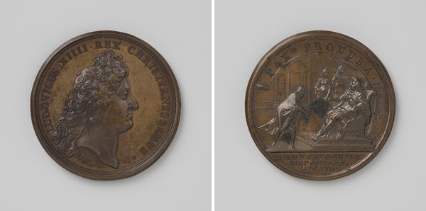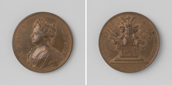 Editor: Here we have a bronze sculpture, a commemorative medal of J.D.C.C.W. Bar. D'Ablaing van Giessenburg, dating from after 1832. It's quite formal and imposing. What can you tell me about it? Curator: Let's consider the bronze itself. Bronze is durable and lends itself to mass production. Commemorative medals like these, crafted after 1832, weren’t just about honoring individuals. They speak to the rise of a bourgeois class wanting to celebrate status and achievements, readily and relatively inexpensively. Note the precision of the detailing – uniform, rank, name – almost mechanical. Editor: So, it’s less about artistic expression and more about societal values made tangible? Curator: Exactly. Look at the implied labor here. Bronze casting in this era wasn’t an individual endeavor; it was workshop-based, involving skilled laborers following prescribed molds. These medals were circulating images, instruments of social messaging. Consider how these objects might be exchanged and collected – building personal and collective historical narratives. Editor: I hadn't thought about it that way. The medal feels less like an isolated art object now, and more like a manufactured product imbued with social and political meaning. Curator: Precisely! Its materiality dictates its social function. Its accessibility due to materials like bronze enabled the mass dissemination of a message and idealized imagery for broader audiences. It shifts our perception when we acknowledge that. Editor: So, examining its materiality reveals broader insights into social and historical contexts. I appreciate that perspective. Thank you. Curator: Indeed. Understanding the “stuff” of art is vital for deciphering its impact.