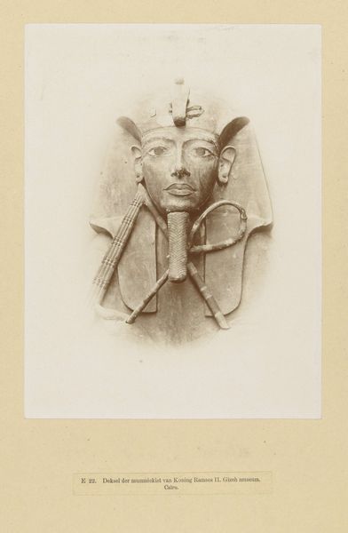 Curator: This is Maxime Du Camp's photograph, "Westernmost Colossus of the Temple of Re, Abu Simbel," taken around 1850. It's an albumen print, a very common photographic process at the time. Editor: The sheer scale is what strikes me first. Look at that figure perched atop the statue's head. It really highlights the monumentality. Curator: Exactly! Du Camp, like many early photographers in Egypt, was documenting these ancient wonders for a European audience, showcasing the power and grandeur of Pharaonic civilization. Think about how photography was changing the way people perceived the world at this time. Suddenly, ancient sites could be disseminated in great numbers to a global audience. Editor: And let's consider the making of the image itself. The albumen process, the transportation of heavy equipment…it speaks volumes about the labor and investment required to capture this. We're seeing the beginning of cultural tourism here, a moment that simultaneously preserves and transforms the perception of these sites. Curator: Absolutely. The photograph itself becomes part of the narrative, reflecting European interests and colonial undertones of the era. It makes you think about who has access to history, and how that access shapes the present. Editor: I agree. The figure placed at the very top makes me wonder, did Du Camp carefully direct this image for dramatic impact and for future circulation? I notice a sort of sandy color tone which reinforces a romantic vision of ancient landscapes that were also desired in decorative arts at this time. Curator: Indeed, photographs like this fueled the Orientalist imagination, catering to European fascination with the "exotic" Near East. We should consider, also, the ethical implications. Who was profiting from these images, and what were the impacts on local communities? Editor: I'm thinking about what it takes to produce these prints, all that mixing of chemicals and prepping glass plates in the sun...it makes it tangible somehow. Curator: It provides a tangible reminder of how cultural understanding can be both deepened and distorted by the act of image-making itself. Editor: Definitely. And remembering the labor and materials used helps bring a sense of grounded understanding that also inspires curiosity and further thought.