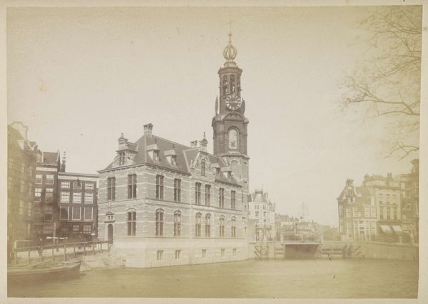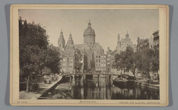 Editor: Here we have Andries Jager's "Oudezijds Voorburgwal gezien naar de Oudezijds Kolk en de St. Nicolaaskerk in Amsterdam," a gelatin-silver print made sometime after 1884. It has such a dreamy, almost melancholic quality to it. What strikes you when you look at it? Curator: The immediate tension lies in the photograph’s surface. While realism, in terms of subject, asserts itself through the depiction of a tangible urban space, pictorialism softens this claim. Editor: Softens? How so? Curator: Notice the tonality, the blurring. These characteristics undermine the photograph's indexical claim to truth, diverting our attention away from the subject matter. Editor: So it’s not really about *where* it is, but *how* it looks? Curator: Precisely. The success of the work rests on its ability to function as a cohesive arrangement of tonal values. Editor: The architecture sort of blends together, almost like a wash. Are you saying that he manipulated the technique to do that? Curator: The manipulation is part of the aesthetic program. The work gestures toward the painterly by downplaying photography's inherent clarity. The artist clearly wanted the photographic medium to ascend from a purely representational role toward an aesthetic one. Editor: I see. So he's not just documenting Amsterdam; he's trying to make it beautiful in a fine art way. Curator: It's a pursuit of beauty residing in the form, and a demonstration of photography's artistic possibilities beyond mere representation. I see this picture now in a completely different light! Thank you. Editor: Me too. Thinking about the composition really opened it up for me.