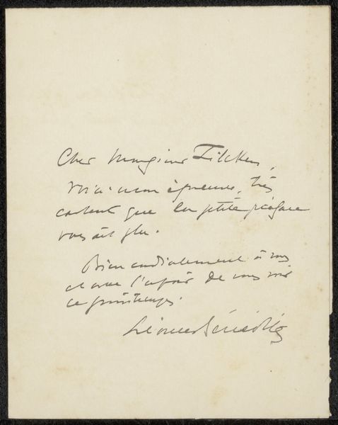 This is "Brief aan Jan Veth," a letter by George Hendrik Breitner from 1891. The immediate visual experience is dominated by the contrast between the off-white paper and the dense, dark lines of Breitner's handwriting. The script cascades down the page, creating a dynamic interplay of positive and negative space. Breitner's handwriting, rendered in thick, almost aggressive strokes, can be read as a series of signs. These signs, however, resist easy decoding. The letterform's inherent structure reflects the flow of thought, but here the structure appears strained, as if the act of writing itself is a struggle. The contrast between the structured lines of writing and the chaotic arrangement on the page destabilizes traditional notions of correspondence. Ultimately, the artwork compels us to consider the materiality of language and the inherent challenges in deciphering meaning from form. The act of reading becomes an exploration of the relationship between the visual and the textual, a dance between structure and interpretation.