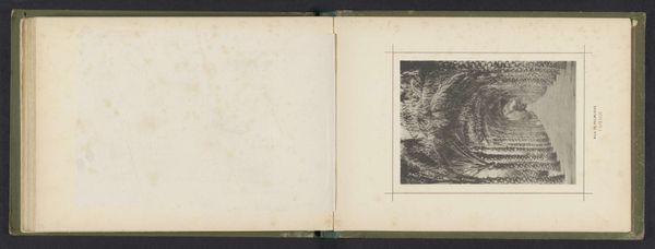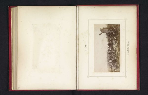Curator: What strikes me immediately is the relentless chaos rendered through this sepia-toned lens. A swarming mass of humanity and horsemanship, dissolving into a blurred horizon. Editor: Here we have a photomechanical print from around 1875-1880 of an anonymous artwork: A photographic reproduction depicting "The Battle of Zorndorf." The original image was most likely a genre painting. The photograph itself is adhered to an album page. Curator: Right, the source is critical. As a reproduction of a painting, it's interesting how the photograph further obscures the romanticized violence of the original. The act of photographic reproduction diminishes the visceral, arguably romantic, intention of the initial painted canvas. How was conflict framed and then *re-framed*? Who controlled the narrative then, and how is that impacted by the mediation we see here? Editor: Indeed, it highlights how materials shape meaning. A painting meant to glorify or historicize becomes an easily disseminated image. Note also that mass-produced photographs altered art consumption and knowledge. Photography allowed wider access, influencing social understandings of art as material, information, and commodity. Did the industrial processes affect viewership of this print compared to the original artwork, and if so how? Curator: Mass production is everything here, especially if access to knowledge can lead to questions around historical power dynamics, for the lower classes and genders who would likely have been left out of a chance to view such work outside of these media. Editor: Absolutely, consider the role of photographic studios—the labor, the standardization—in making artworks and scenes accessible as images. And yet, doesn't the fading sepia, the visible glue marks, bring us back to the physical labor and tangible reality behind the mass consumption this photographic production would have enabled? The means of production themselves feel more physical now, the paper almost a precious relic? Curator: That's the tension here isn't it, the push and pull between its intended heroic historical narrative, versus this almost… nostalgic material reality and our interpretation. We have to question what is revealed, what is obscured and why, within the photographic choices being made by a creator whom is not the painter of the work itself. Editor: Food for thought about the convergence of industry and artistry! Curator: Exactly! A complex visual artifact from a transformative era, forcing us to contemplate multiple layers of mediation.