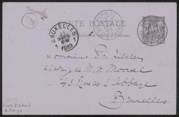 This is a postcard sent to Philip Zilcken, penned by Adriaan Pit in 1889. Consider the humble postal stamp, a seemingly mundane detail, yet teeming with cultural significance. Here, we see Marianne, the national personification of the French Republic, a symbol of liberty and reason. Marianne's roots can be traced back to the French Revolution, embodying the ideals of freedom and equality. We find echoes of this allegorical figure in classical antiquity—a modern Minerva, perhaps? Over time, Marianne has evolved, adapting to different political climates, at times a revolutionary figure, at others, a symbol of national unity. The presence of Marianne on a simple piece of mail speaks volumes about the collective memory and the desire for continuity with foundational ideals. What appears as a mere postal marking reveals the timeless human need for representation and the power of symbols to evoke shared cultural and emotional experiences. The symbol progresses, evolves, and takes on new meanings in differing historical contexts.