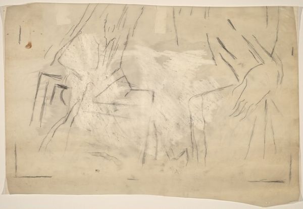 Editor: We’re looking at Carl Buchheister’s "Composition Gowa," made in 1958 using watercolor and drawing on paper. It’s quite abstract, a flurry of lines and pale washes. It almost feels like looking at something organic under a microscope. How do you interpret this work? Curator: It's tempting to see "Composition Gowa" solely as a formal experiment. But situating it within the post-war context and the rise of Art Informel opens richer readings. The seeming chaos can be read as a reaction to the rigid structures, both artistic and political, of the pre-war era. Do you notice how the lines, though seemingly random, create a sense of restrained energy? Editor: I see that, yes. The energy feels very internal, not explosive. It’s like potential waiting to be unleashed. Curator: Exactly! And the use of such delicate materials – watercolor and paper – contrasts sharply with the monumental and often bombastic art of totalitarian regimes. This delicacy can be seen as a deliberate choice, a quiet form of resistance. How does the title "Gowa" – seemingly disconnected from the imagery – play into this? Editor: Maybe it's a reference to a place, a memory, or something personal for the artist, adding another layer of meaning that we might not be able to fully grasp, but can sense is there. It makes the abstract more… grounded somehow. Curator: Precisely. Buchheister is embedding layers of meaning - both overt and obscured, creating space for viewers to activate meaning through their interpretation and interaction. Editor: I never considered abstraction as a form of quiet resistance, so I found your point about context really insightful. Curator: And I'm reminded how vital that sense of potential, the “waiting to be unleashed” feeling you observed, remains even decades later. Thanks for your perspective.