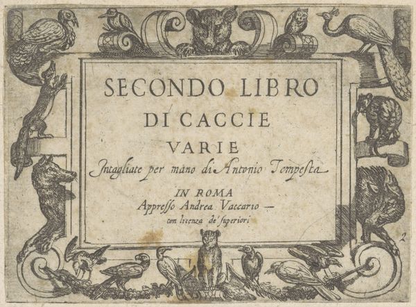 Editor: Here we have "Fiori di Ricami Nuovamente Posti in Luce," a print from 1591 by Matteo Florimi. It looks like the title page of a book. I am immediately drawn to the delicate, floral border around the text. How do you interpret the visual symbolism here? Curator: This title page resonates with layers of meaning, beyond its stated purpose as a pattern book for embroidery. Notice how the border, indeed floral, evokes both natural beauty and contained space. What might the act of containing these 'flowers of embroidery' within a frame symbolize to you? Editor: Perhaps the frame suggests the domestic sphere, traditionally the realm of women, where such crafts were practiced. Curator: Exactly. The floral motifs, recurring throughout textile history, connect to broader cultural ideas of femininity, nature, and skill. Consider the title – "flowers of embroidery, newly brought to light." How does that suggest something more than just patterns? Editor: It feels like it elevates the craft, giving embroidery the same value and importance as painting or sculpture. Curator: Precisely. The book’s contents offer not just visual designs, but also a kind of social permission. This act of 'bringing to light' signifies empowering women, who create these works, through literacy and artistic instruction. The image contains symbolic meaning that goes beyond the visual pleasure that they bring us. What's your main take away? Editor: I see it's more than just pretty designs, the prints represent knowledge, skill, and an elevated status for women during the Renaissance.