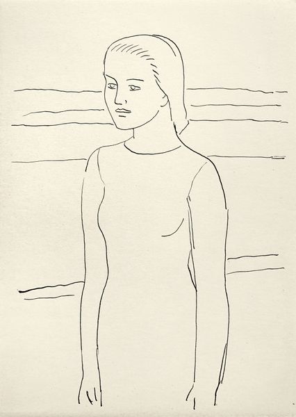 Hryhorii Havrylenko's sketch, "Female Image," captures a figure with minimal, elegant lines. The artist uses a sparse composition, focusing our attention on the subject’s form and posture. Look at how the delicate, continuous lines define the contours of her body and face, creating a sense of fluid movement and a serene stillness. The simplicity of the drawing invites us to consider the essence of representation itself. Havrylenko challenges traditional portraiture by reducing it to its most fundamental elements, revealing the underlying structure of form. This reduction prompts us to question the nature of identity and the way it can be conveyed through art. The work destabilizes fixed meanings, suggesting that less can indeed be more profound. Ultimately, this drawing is not just about depicting a woman, but about exploring the possibilities of line and form to evoke emotion and thought.