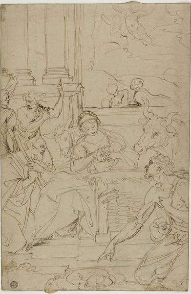 Michel Dorigny created this drawing, Bacchanal, in the 17th century. It depicts a scene of revelry associated with Bacchus, the Roman god of wine, freedom, and ecstasy. Created in France, this artwork aligns with the period's broader cultural interest in classical themes. Such subjects were favoured by the French Royal Academy of Painting and Sculpture. Dorigny himself worked within the orbit of this institution. Note how the figures' poses and idealized bodies reflect academic principles. The flowing lines and dynamic composition evoke a sense of movement and energy, characteristic of Baroque art. The scene hints at the social function of art during the time. It was a tool for the elite to display their knowledge of classical culture. To fully understand this work, we can consult historical texts, social histories of art, and institutional records. This contextual research illuminates the social dynamics and cultural values of the era.