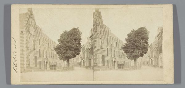 This stereograph of a street in Vlissingen, featuring the tower of the Grote or Sint-Jacobskerk, was made by Pieter Oosterhuis using a photographic process. The photographic print, with its sepia tones and remarkable detail, reveals the material qualities of the urban environment. We can see the texture of the brickwork, the play of light on the windows, and the subtle gradations of tone in the sky. Photography, from its beginning, was deeply entwined with both artistic and industrial practice, requiring the labour of photographers, the manufacture of equipment, and the distribution of images. Stereographs like this one were popular in the 19th century as a form of mass media. They were produced in vast numbers, catering to a growing market for visual representations of the world, and capturing the social and cultural life of the time. Looking closely at the photographic print encourages us to appreciate the interplay between technique, representation, and social context, allowing us to see this artwork not just as a picture of a street, but as a complex object with cultural significance.