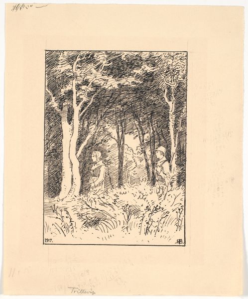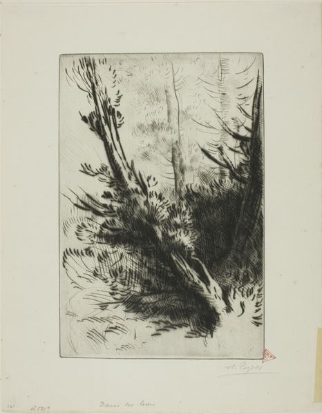 This is "Bomen in hoog gras" by G. van der Mey, an etching made using fine lines to create a detailed scene. You know, the density of the lines really pulls me in. The way the light filters through those high grasses and dances on the bark is quite enchanting. It’s like Van der Mey isn’t just depicting a landscape but also the feeling of being immersed in it. Look at the lower left where the lines are so close together it almost feels like a thicket you could get lost in, a chaos of nature, contrasted with the almost airy quality of the foliage at the top. It's a lovely juxtaposition, and the way the etching captures the textures of bark and leaf is remarkable. It reminds me of other printmakers like Whistler, who used similar techniques to explore atmospheric effects. But where Whistler aimed for a certain refinement, Van der Mey feels a little wilder, maybe a little more closely attuned to the raw energy of the natural world. Art is like a long conversation across the ages.