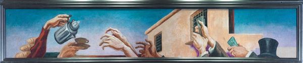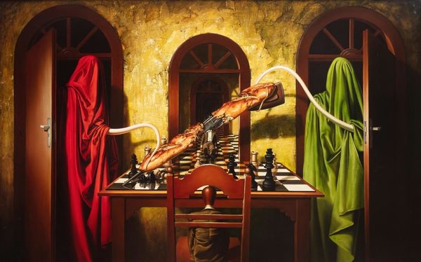 Sidney Nolan made this painting, Glenrowan, with oil on canvas, and it feels like a raw, immediate response to a historical event. The palette is dark, almost brooding, but there are these pops of intense color that jolt you. See how the paint is applied, so directly, you can feel the artist’s hand moving, smearing, building up the image. It’s like he's trying to get the story out as quickly as possible. Look at the figure’s face, trapped inside that square helmet. It’s both a mask and a prison. The red and green squares read almost like a code, or maybe just a crude attempt at camouflage. The whole image feels unresolved, like a memory that keeps shifting. Nolan’s paintings of Ned Kelly always strike me as more than just historical depictions; they're about how we make sense of our history, and how history makes us. This piece reminds me a bit of Philip Guston’s later work, that same sense of grappling with something heavy through simple, almost cartoonish forms. Art doesn't need to be tidy; it's often in the mess that we find something real.