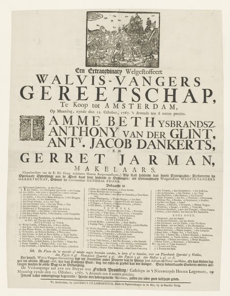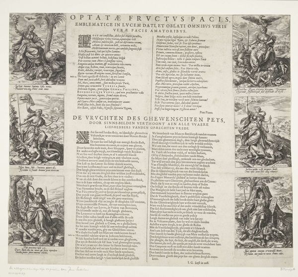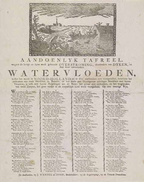 Editor: This engraving, "Treurzang op de Leidse buskruitramp, 1807," from the Rijksmuseum, is a printed lament by Jacobus Wendel on the Leiden gunpowder disaster. It's overwhelmingly text-based with small images at the top and gives a feeling of something between a news bulletin and a hymn. I find the use of type really fascinating. What can you tell me about this piece? Curator: It whispers a tale, doesn't it? Imagine holding this broadside just days after the explosion, the ink still fresh, the words raw. I imagine people gathering together reading this aloud. The typeface itself speaks volumes— a kind of hurried elegance, hand-drawn but yearning for formality. And those little vignette illustrations— almost naive in their depiction of chaos— feel like desperate attempts to visualise the unimaginable. They are glimpses through a veil of sorrow, you know? What do you make of the handwritten nature? Editor: I guess I see it reflecting a time before mass media, when news and mourning were intertwined and very personal. Like, the typography is central to the print's purpose and reflects the community mourning in Leiden, the human reaction to the tragedy itself. Curator: Precisely. Each imperfection, each tremor in the line, embodies the shock and grief felt at the time. There’s something deeply moving in that tangible connection. These were crafted objects designed for quick dissemination, the visual design reflecting a communal spirit. It becomes almost like holding a fragment of that collective grief in your hand. But do you see the contrast between the intention and final execution of the work? Editor: Now that you mention it, the contrast between the clean typeface and chaotic images is there. Like an ordered cry! Curator: Yes, exactly. The work immortalizes an effort to contain something so inherently devastating. It makes one really sit in the discomfort between order and entropy. Editor: So the art lies in its very raw presentation? It presents tragedy not sensationally, but sincerely, right? Curator: I think you hit on the right sentiment. The design serves not to exploit but rather to express a shared human experience of tragedy and how even the most visually basic approach has an innate expressiveness of loss and memorialization.