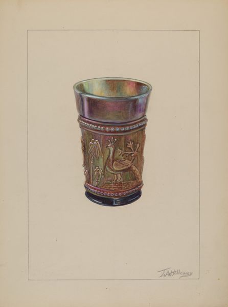 This is Ralph Atkinson’s painted vase. Notice the dominant use of blue, and the vessel’s shape. This choice evokes the ancient world, reminiscent of vessels used in classical Greece for wine or oil. The vessel is adorned with stylized motifs. We see the "eye" motif which appears throughout history, from ancient Egyptian amulets to Renaissance paintings, often serving as a symbol of protection, or divine presence. The golden floral patterns, delicate and repetitive, evoke ideas of growth and prosperity. Consider how such vessels, across cultures, were central to rituals, conveying not just function but status, value, and sometimes magical properties. Atkinson seems to be invoking these ancient echoes, reminding us of the timeless human impulse to imbue objects with meaning. The eye motif, and its function as a signifier for protection, shows a cyclical journey through diverse cultures. Atkinson uses the vase as a vessel, not only of liquid, but of cultural memory.
