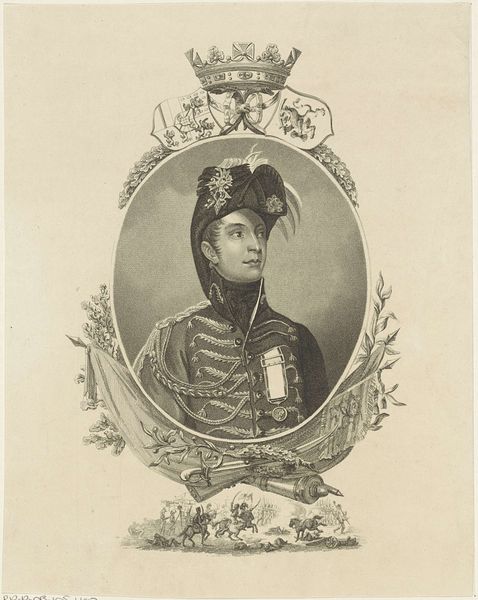 Johann Jakob Rieter made this portrait of J. Arenfeldt, a captain in the Danish Navy, using etching and engraving techniques. These processes involve meticulous work, where the artist covers a metal plate with a waxy ground, draws through it to expose the metal, then immerses the plate in acid. This etches the lines, allowing for incredibly fine detail and tonal variation. Look closely, and you'll notice the crisp lines defining Arenfeldt's profile and the delicate shading that gives depth to his uniform. The choice of printmaking, rather than painting, speaks to a wider distribution of images and ideas. Portraits like these served not only as records of individuals but also as symbols of power and status, and the labor involved in their production – from the engraver's skill to the printer's craft – reflects the complex social dynamics of the time. By appreciating the materials and making, we can understand the full meaning of this artwork.