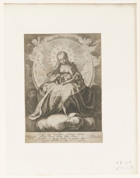 Raffaello Schiaminossi etched this image of Maria met Kind in de wolken, or Mary with Child in the clouds, sometime around the turn of the 17th century. The Madonna, haloed and serene, sits on a cloud bank, cradling the Christ child, while cherubic angels peek from behind the heavenly vapor. Consider the cloud motif – it’s not merely decorative. Clouds have long symbolized the divine presence, a celestial boundary between the earthly and the sacred. We see similar motifs in depictions of Olympus in classical antiquity. The cherubs, too, are fascinating. These winged infants, derived from ancient putti, evoke a sense of innocence and spiritual purity. They resurface throughout art history, from Renaissance paintings to Baroque sculptures, each time imbued with evolving cultural meanings. Ultimately, Schiaminossi's etching engages us on a subconscious level. The tender embrace of mother and child, the promise of salvation, and the celestial setting create a powerful image that resonates across time. The sacred and profane, the divine and human, all intertwined in this beautiful print.
