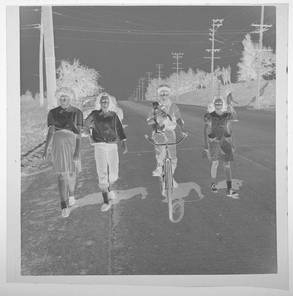 This photograph, taken in July '56, toys with our sense of perception, making you question what is really there. The way the figures are arranged messes with scale and depth, as if the foremost boy is holding the others in his palms. I love the greyscale palette and the grainy texture, it reminds me of the material quality of a pencil drawing. The anonymous photographer here treats the camera as a tool for playful exploration, embracing the way it can bend reality. Look at the expression on the boy's face, he’s completely deadpan, adding to the absurdity. In some ways, this image is like a proto-Cindy Sherman, who also played with constructed identities and challenged our perceptions. It reminds us that art is a constant conversation, echoing and transforming ideas across time. Ultimately, the meaning of this photo is open to interpretation, but that's what makes it so engaging.