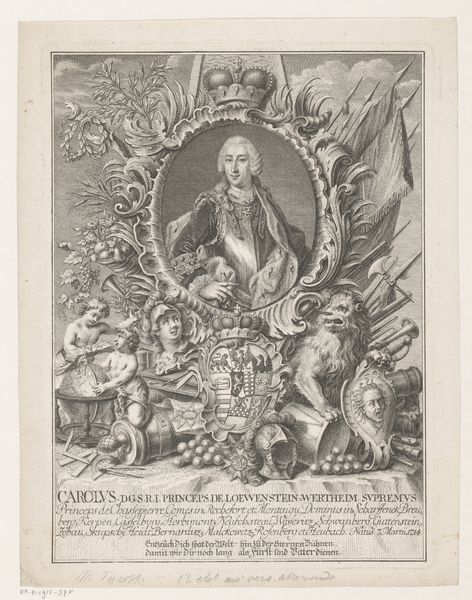 This engraving, portraying Cardinal de Fleury being presented by Diogenes, was made by Sébastien Pinssio in 18th century France. It captures a moment of social commentary, filtered through classical imagery. Here, Diogenes, the philosopher known for his cynicism and simple life, holds a lantern up to de Fleury’s portrait, seemingly in search of an honest man. The image speaks to the political climate of the time, hinting at corruption or moral bankruptcy within the French state. The choice of Diogenes, a figure who rejected social norms, adds a layer of critique toward established institutions, including the church, which Fleury represented. Historians might consult period pamphlets and political cartoons to understand the full scope of this artwork's critique, and to examine the role of visual satire in shaping public opinion. The image reminds us that art always exists in a social and institutional context, and can be used to question established power.