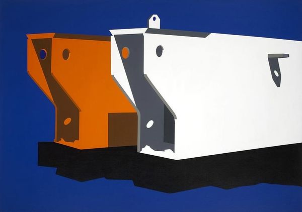 Editor: This piece is an untitled assemblage sculpture by Paul du Toit, its date is unknown. Made from metal and found objects, the contrasting colours and layered mechanical components give the work a bold presence, as if sprung from the imagination. What elements of its visual composition stand out to you? Curator: The assemblage's vertical thrust is undeniable, punctuated by the strategic placement of colourful circular forms—gears, rings—that ascend toward what one might call a 'head' of stacked planes. Observe how the artist manipulates negative space; voids articulate the dense composition, inviting the eye to traverse and linger. Does the interplay between the readymade objects alter our perception of them individually? Editor: Definitely, the bright colours change their context. What do you think about the white geometric shapes near the top of the artwork? Curator: Those pristine white planes create a compelling dialogue with the grittier, more obviously 'used' components below. Are they disruptive, or do they harmonize? They operate as framing devices, accentuating the three-dimensional form while subtly referencing the two-dimensional picture plane. Do you see a connection between these planes and the flat background? Editor: Now that you point it out, yes, they do feel like they’re trying to break free. Is that contrast a form of commentary? Curator: Perhaps, but formalistically speaking, it reinforces the dynamic tension that propels the entire composition upward. This tension arises not only from the object's inherent materiality but also from their strategic arrangement and colour relationship. It suggests that through this strategic arranging of parts the artist suggests a state of continual becoming. What does this assemblage signify, if anything? Editor: Initially, I saw industrial elements reformed into an aesthetic piece, but your formal reading opened my eyes to considering depth and the dialogue between the different parts in their use of colour. Curator: Precisely. By analyzing intrinsic forms, relationships, and juxtapositions, we gain insights into not just what it is, but how it is, and ultimately, perhaps, why it is. The significance resides within.