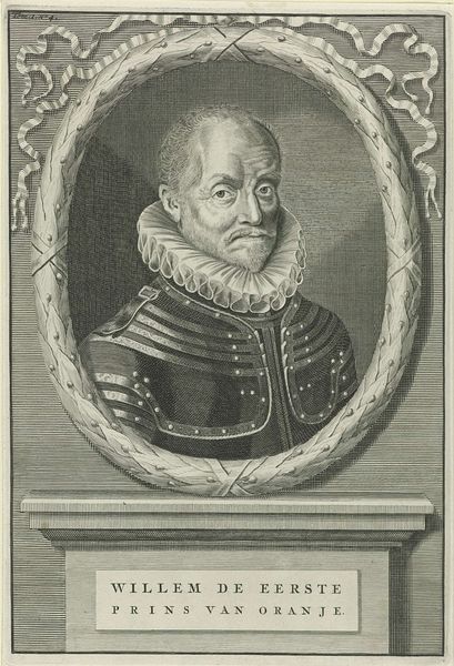 Curator: Here we have a fascinating engraving by Coenraet Waumans, created sometime between 1633 and 1673. It’s titled "Portret van Ferdinand van Beieren, aartsbisschop van Keulen," which translates to "Portrait of Ferdinand of Bavaria, Archbishop of Cologne." It resides here at the Rijksmuseum. Editor: Oh, what a striking fellow! There's a formality, yes, but something about those eyes... they almost seem playful, despite all the regalia. The frame and crown behind him really boost the sense of weight and authority, I see a caricature with serious intent here. Curator: Absolutely. And it's all conveyed through the process of engraving. Think about it, the artist would have used tools to cut lines into a metal plate, which was then inked and pressed onto paper. That act of repetitive labour reflects the very structure of power Ferdinand inhabited, hierarchies literally etched into being. Editor: It makes you think about the choices involved. Why engraving? Was it simply the most accessible medium for disseminating images of important figures, a cost-effective strategy? Or was there something more symbolic to the reproducibility itself, a kind of claim on immortality through countless prints? Curator: Well, printing, engravings… These forms had incredible social reach during the Baroque period, a means to disseminate specific imagery and messages. This was mass production of imagery for a developing world. Here we see a fusion of history, material and accessibility meeting. Editor: It certainly gets you considering power, production, and the means by which an image of an individual gains authority. I mean, here we are centuries later, still debating this Archbishop! You feel his stare still. Curator: Indeed. The endurance of this image says a great deal about the intertwined nature of power and representation. An artifact shaped by its material and socioeconomic conditions yet speaking so vividly across time. Editor: And for me? It is a fascinating reminder that a picture is never 'just' a picture. This print is so suggestive! Now, who was this man really? Curator: A potent question, I think. Editor: Exactly, that is food for thought!