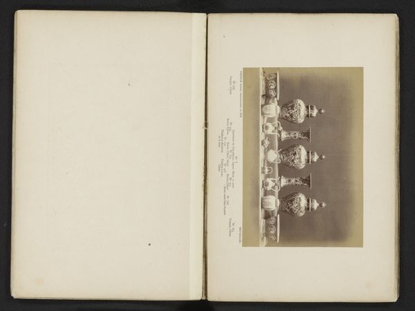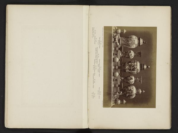This photograph, "Dertien objecten, waaronder Chinese vazen", of thirteen objects including Chinese vases, was made by Ghémar Frères. These objects, carefully arranged, speak to a moment of intense cultural exchange and, perhaps, a hint of appropriation. As Europe expanded its reach through trade and colonialism, objects like these vases became potent symbols. They represented not just artistry but also the complex relationships between the East and West. Consider how these vases, once central to Chinese culture, are now presented as collectible items. What does it mean to display them in a new context? This image subtly underscores themes of trade, value, and the shifting meanings objects acquire as they travel across cultures, prompting questions about the history and power dynamics inherent in cultural exchange. It also encourages us to reflect on the emotions tied to objects and their stories.