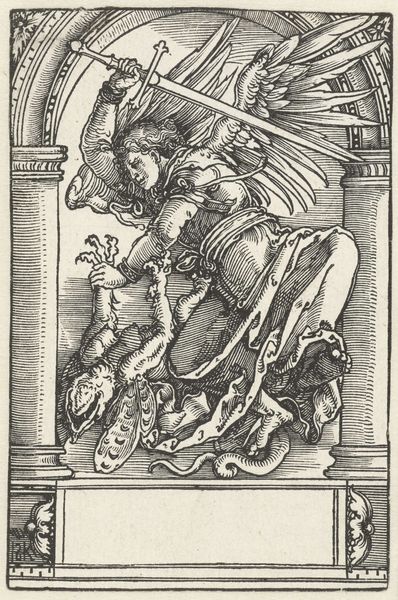 Editor: Here we have Hans Baldung's "Family coat of arms Baldung," created around 1530. It's an engraving, with a lot of intricate detail. The image is striking and somewhat chaotic, with the rampant unicorn and the dense hatching lines. What are your thoughts about it? Curator: It is, indeed, quite detailed for its time. Looking at it from a materialist perspective, the density of the engraving suggests a significant amount of labor and skill invested in the piece. What stands out to me is the intersection of craft and social standing. Consider the very act of commissioning such an elaborate family crest. What does that tell us about the Baldung family's aspirations? Editor: That's interesting, I hadn’t thought about it like that. It's more than just a decoration. Was it about establishing themselves in society? Curator: Precisely. And how is that achieved? Through the manipulation of materials—the copper plate, the ink—transformed by the engraver’s hand into a symbol of power and prestige. This act elevates both the family and the artist, at least in theory. We have to wonder about the status of the engraver themselves within this hierarchy. Editor: So the art object here embodies both the labor that went into it and the societal power dynamics at play during the Renaissance. Curator: Exactly! Think of the market for prints at the time. Who was consuming these images, and what did they signify to them? The print, once made, could circulate and be reproduced. How does this accessibility challenge or reinforce the traditional notion of art as a unique object? Editor: I see. It is not just an image, but a document reflecting material conditions and social tensions. Thanks for highlighting those relationships. Curator: It reveals how deeply embedded these pieces are in their specific historical moment, constantly reshaping our understanding.