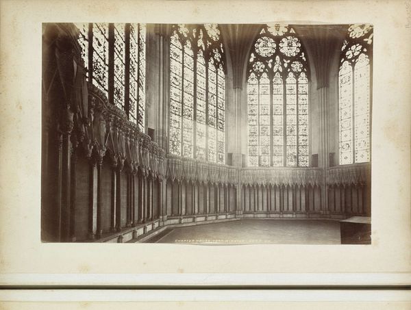 Editor: We’re looking at "Interieur van de Nieuwezijds Kapel te Amsterdam," a 1908 print by Albert Adriaansz. There’s a stark, almost haunting quality to this interior shot of the chapel; it feels vast and somewhat desolate. What grabs you when you look at this? Curator: Oh, that emptiness, it whispers possibilities, doesn't it? It reminds me of those old sepia-toned dreams. The photograph, more than a document, becomes a stage. Notice how Adriaansz uses light – those ethereal rays slicing through the architecture… Do you see how they almost *bless* the space? It's not just illumination, it's… well, almost spiritual graffiti. Makes you wonder about all the stories held within those walls. What do you think the chapel felt like back then? Editor: Definitely agree about the light, it almost steals the show! I’m guessing, with the beams, that it was maybe being renovated? Curator: Good eye! Yes, the supports suggest a building caught between states, which heightens that feeling of suspended time, like the soul of the chapel itself is hovering for a moment to consider its purpose. You can almost smell the sawdust, feel the cold stone beneath your bare feet. Don't you think art is just magic that gets you to dream in colour even on days when everything else is just beige? Editor: Totally! I love that – spiritual graffiti, and dreaming in colour. It gives a completely new way of appreciating not just the building but what the photographer wanted us to feel. Curator: Exactly! The chapel becomes a container, for our stories, too. Art’s invitation is an eternal echo: Step inside, my friend, and see yourself.
