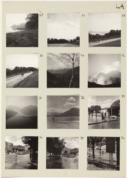 This sheet of photographic stills was assembled by Robert Frank between 1961 and 1972. The artist captures various scenes from mountainous landscapes to simple trees. Consider the tree. It is a potent symbol, deeply rooted in human consciousness, representing life, growth, and interconnectedness. From the Tree of Knowledge in Eden to the World Tree Yggdrasil in Norse mythology, trees have long been central to our spiritual and cultural narratives. In these photographs, the tree is pictured in various ways. In some, the tree dominates the frame, while in others, the tree is pictured at a distance. Frank echoes the symbol of the tree in many other artworks, where it becomes a recurring motif—a silent witness to human drama, a symbol of resilience, and a reminder of nature's enduring power. In this array of stills, we see not just landscapes, but a contemplation on the cycle of life.