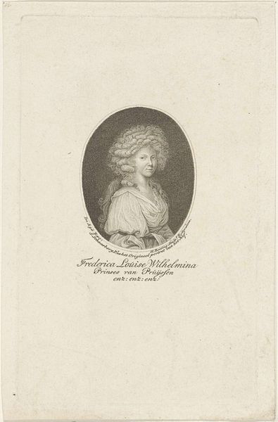 Editor: Here we have "Portret van Marie Antoinette," a print from after 1793 currently housed in the Rijksmuseum. It's an engraving, giving it this detailed, almost photographic quality despite its age. I find the medium particularly interesting. What does this print say to you? Curator: For me, this image isn’t just about the Queen; it's a material artifact deeply intertwined with the French Revolution’s complex social landscape. Consider the *process* of engraving: meticulously crafted using specialized tools. It allowed for mass production, a crucial factor in disseminating propaganda – whether for or against the monarchy. Who do you imagine would be commissioning, distributing, and consuming a portrait of Marie Antoinette after her execution? Editor: Perhaps those loyal to the crown who mourned her death or those using the print to denounce the monarchy? Curator: Precisely! And note the materiality. Paper was relatively accessible, making prints an effective tool for broader audiences than paintings. The stark black and white, born of the engraving process itself, adds to a somber mood but it also speaks to accessible artistry, don't you agree? How does this form compare to previous more luxurious portraiture commissioned for/by Marie Antoinette? Editor: That's a great point; it does seem a stark contrast to the extravagant oil paintings usually associated with royalty. So, the means of production really do affect the way the subject is perceived? Curator: Absolutely. This wasn't about celebrating royal power. This print, in its materiality and distribution, is as much a reflection on the revolution itself, the labour of artistic production and the culture of consumption than of the Queen. Editor: That is truly eye-opening, I will definitely be considering materiality going forward. Curator: Indeed! Recognizing the process of artistic production sheds new light on this image.