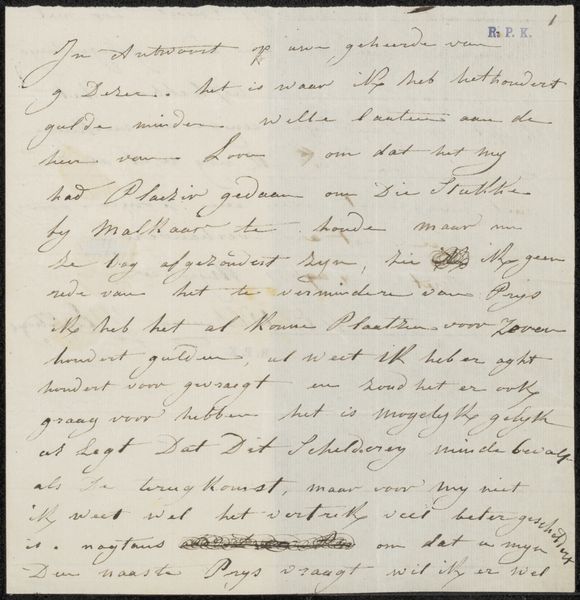 This is a letter, written by Johannes Bosboom to Edward Jacobson, though it is undated. It is made with paper, ink, and the very personal touch of handwriting. In an age of increasing industrialisation, even the simple act of writing a letter had social implications. The availability of paper and ink reflects expanding trade networks and production technologies. The letter itself is a product of its time, reliant on an infrastructure of postal services and transportation networks that were changing the pace and nature of communication. The act of handwriting becomes significant, a deliberate choice to maintain a personal connection and express individuality at a time when printed forms were becoming increasingly prevalent. We can imagine Bosboom carefully forming each letter, imbuing the message with his own character. So, even this simple piece of paper, when understood in terms of materials and social context, invites us to reflect on the relationship between the individual, the means of communication, and the wider forces of society.