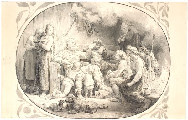 Giovanni Domenico Tiepolo created this fresco, "Dying Jacob blessing his sons." The somber scene, dominated by grey tones, focuses on the figure of the patriarch Jacob, surrounded by his sons. The composition is structured around the bed, the focal point visually reinforced by the mourning figures. Windows add geometric relief to the background. Tiepolo uses light and shadow to define the figures, imbuing them with a sense of weight and presence. This use of chiaroscuro enhances the scene's dramatic intensity, emphasizing the emotional gravity of the moment. What strikes me is the interplay between the monochrome rendering of the figures and the gilded details in the background. This juxtaposition highlights a tension between materiality and spirituality. The fresco operates on the level of visual semiotics, where gestures, drapery, and the emotional expressions of the figures act as signs communicating grief, reverence, and patriarchal blessing. Ultimately, this fresco invites us to reflect on how formal elements like color, light, and composition are interwoven to convey meaning.