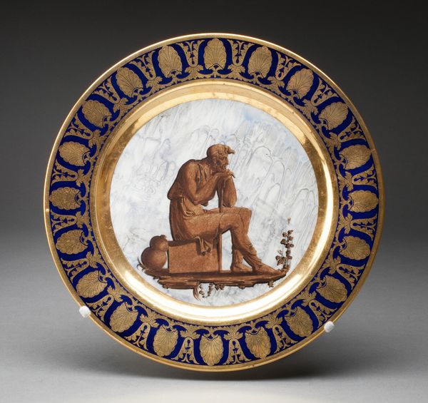 This cream-colored stoneware plate depicts a dying man receiving his last rites. The scene's power lies in the ritualistic gestures—the priest’s hand administering oil, the open book symbolizing sacred text, the candle representing the soul’s illumination. These motifs echo through time, resonating with earlier depictions of anointing rituals. Think of similar gestures in Byzantine mosaics, where emperors and saints receive blessings, a visual language adopted and adapted here for a somber, final act. The flame, a symbol of life, flickers here as mortality’s stark reminder. It is an emotional beacon engaging viewers on a subconscious level, sparking deep introspection. Note how the scene’s composition leads our eye, mirroring the emotional weight of the sacrament. Such symbols and the feelings they evoke transcend their immediate context, resurfacing through history. These images are not merely historical records; they are powerful forces engaging us on a deep, subconscious level, their meanings perpetually reborn.