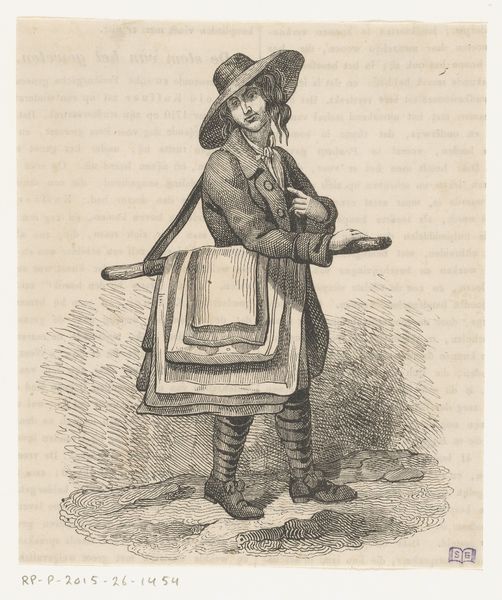 This small vignette, whose artist is unknown, was made to accompany Edvard Brandes's treatise on Adolf Rosenkilde, now held at the Statens Museum for Kunst. The image presents a figure reminiscent of Rosenkilde himself, rendered in what appears to be a caricature. Clad in attire that evokes a bygone era, he stands beside a stylized letter 'A,' presumably for Adolf. Given that Brandes was a prominent cultural figure in Denmark, the image suggests a playful engagement with intellectual circles. The artist and the date are unknown, further research into Brandes's circle and Danish literary society is needed, one would have to look into letters, publications, and archival records. This would shed light on its creation and significance within the context of Danish intellectual history. Understanding the social dynamics and artistic conventions of the time is essential to uncovering this image's full meaning.