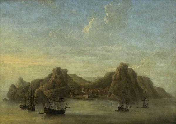 George Lambert’s painting offers us a panoramic view of Dover Castle composed with careful attention to the landscape's horizontal and vertical elements. The structure of the castle, perched atop the cliffs, uses a robust architectural form that contrasts with the expansive sky and sea. Lambert has meticulously arranged the scene into distinct layers; the foreground with its winding path and figures, the middle ground with its undulating hills, and the background dominated by the calm sea and horizon. The light in this composition has been rendered in a way that softens the imposing nature of the fortress. The warm hues of the sky suggest a tranquil atmosphere, while the castle's solid form is softened by the atmospheric perspective. Lambert's painting isn't just a representation of a physical place; it's an image of idealized Englishness. This work is a subtle interplay between power and picturesque aesthetics. It reminds us that landscapes are not just about what we see, but also how we are taught to see.