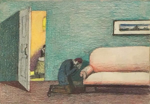 Patrick Procktor painted 'Sick Child' in watercolor, capturing a moment of quiet vulnerability. Procktor, a gay artist who came to prominence in post-war Britain, often focused on themes of intimacy and the human condition. In this painting, the androgynous figure, cocooned under a plaid blanket, evokes both tenderness and a sense of isolation. The muted palette and soft brushstrokes enhance the emotional weight of the scene. The child's closed eyes and stillness suggest a world withdrawn, a space where illness blurs the boundaries between the self and the surrounding environment. Procktor’s choice of subject matter often challenged conventional notions of masculinity and representation, offering alternative narratives of identity and experience. "As an artist, you are involved in your own autobiography,” he once said, and here, the act of portraying this sick child feels like an intimate reflection on fragility. The painting encourages us to consider our own experiences of illness, care, and the quiet moments that shape our lives. It's a poignant reminder of the shared human experience of vulnerability, made all the more compelling through Procktor’s empathetic gaze.