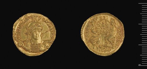 Editor: Here we have a Tremissis of Anastasios I, a small gold coin. Its condition speaks volumes, doesn't it? What can you tell me about it? Curator: The production and distribution of this coin reveal the economic and political systems at play. The value of the gold itself, the labor involved in its extraction and crafting, all become significant points of inquiry. Consider how it facilitated trade, legitimized power, and circulated as a commodity. Editor: It's incredible to think about its journey, from the mine to someone's pocket. Curator: Exactly. It invites us to explore the social relations embedded in its creation and use, challenging notions of inherent artistic value. A coin is not just a coin; it's a record of material exchange. Editor: I've never thought about it that way! Curator: Materiality shapes meaning, and coins offer a unique lens onto the historical forces of production, exchange, and consumption.