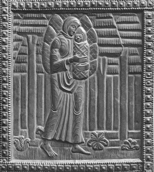 Editor: This is "Anne Phelps, Windsor, Vermont, 1797," attributed to Ann Parker, housed here at the Harvard Art Museums. It has such a unique, almost primitive quality. What do you see in its form and structure? Curator: The composition presents a fascinating interplay of geometric forms. Note the arching lines mirrored below, framing the central figure. The texture created through the linework provides depth. Editor: So the formal elements create this sense of visual balance? Curator: Precisely. The artist employs symmetry, yet subverts it with variations in line and form, creating a dynamic tension within a seemingly static image. Editor: That's a very interesting perspective. Thanks for sharing your analysis. Curator: My pleasure. It's always rewarding to examine the intrinsic qualities of art.